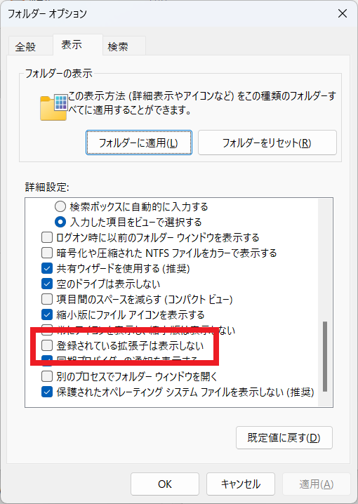 Windowsのファイルの拡張子の表示と隠しファイルの表示方法